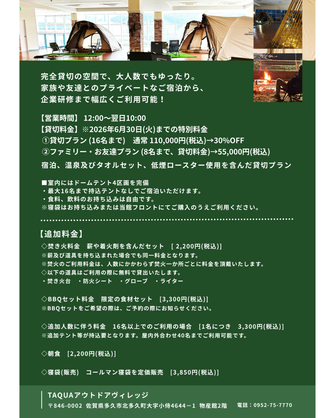 いつも、天山多久温泉TAQUAをご利用いただき、誠にありがとうございます。